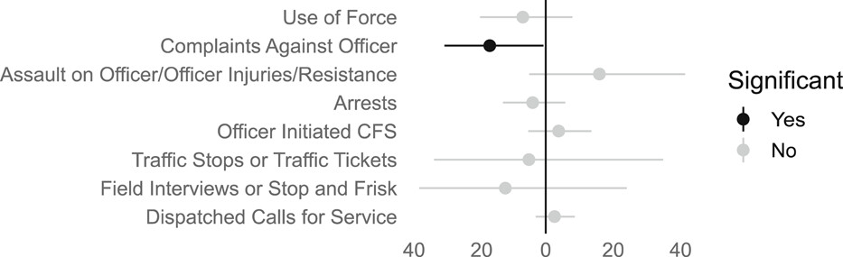 2017). De-policing is hypothesized to occur when officers reduce their proactive activities because it could increase their risk of being recorded and scrutinized for their actions. This reaction might seem most likely for heavy-handed and controversial proactive activities such as excessive or unconstitutional stop-question-and-frisks. The notion of de-policing, however, could extend to any “extra” policing beyond responding to 911 calls (e.g., community engagement, proactive/directed patrols at crime hot spots, traffic stops, and problem-oriented policing activities). In turn, because proactive policing is believed to help prevent or deter crime (see National Academies of Sciences,