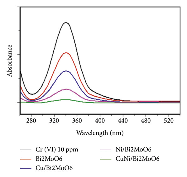 In recent past, many photocatalysts have been utilized for the reduction of hexavalent chromium from waste water. Table 2 displays photoreduction of Cr(VI) by various photocatalysts. Comparative analysis shows that CuNi/Bi2MoO6 has better degradation ability than other reported catalysts.