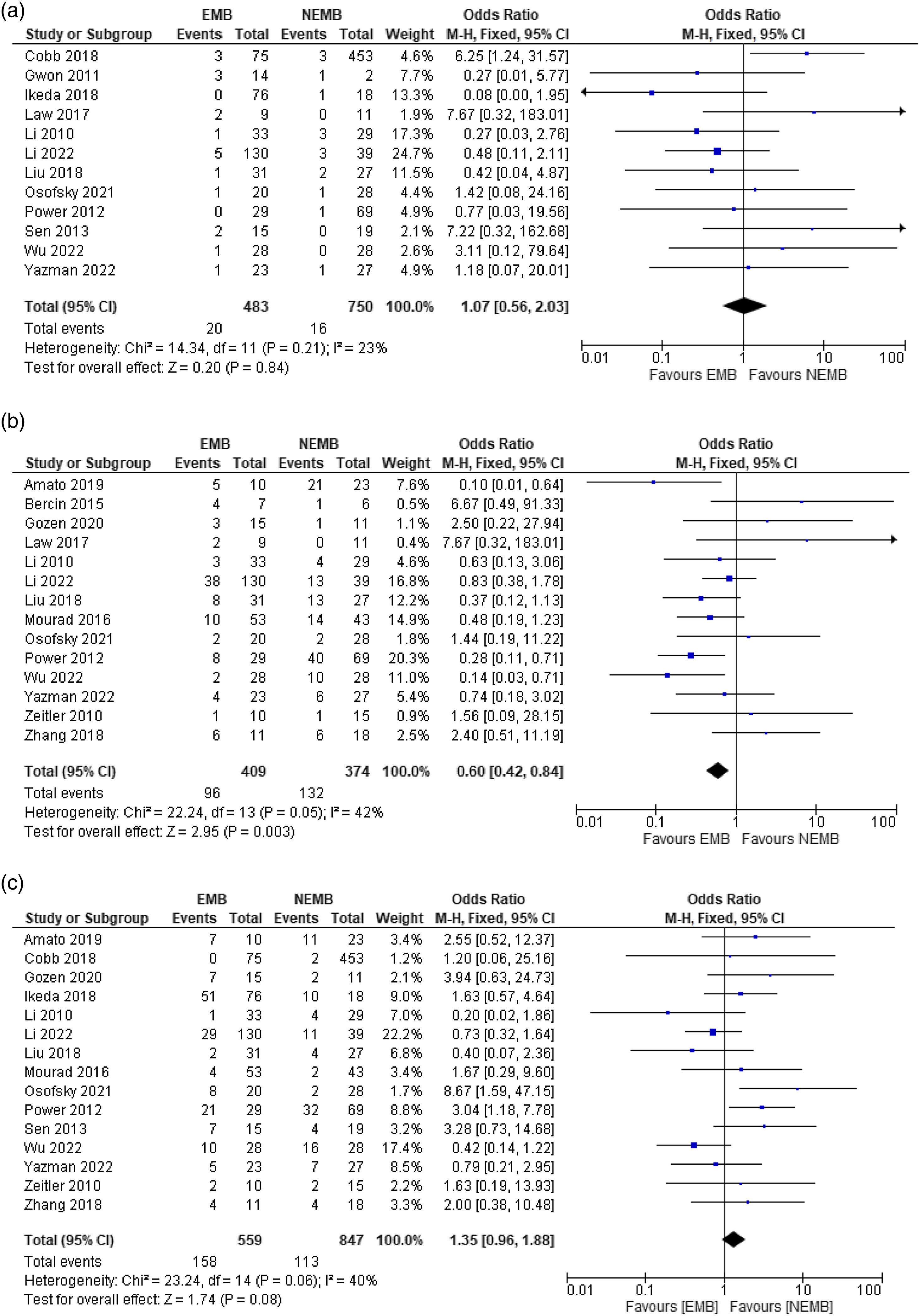 A major criterion of exclusion from the meta-analysis was studies failing to report incidence of complications separately for each group (EMB and NEMB).