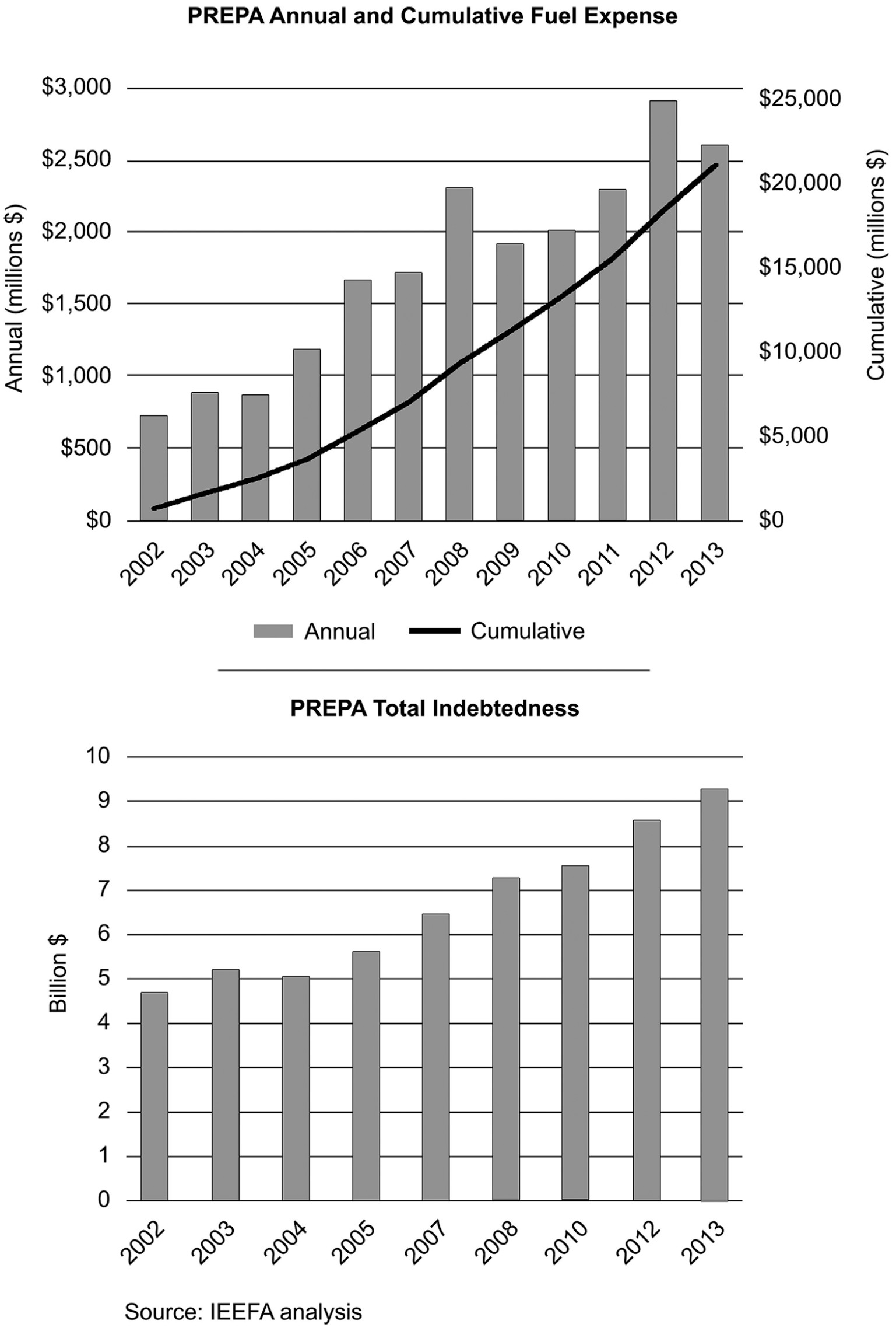 Sanzillo and Kunkel, 2018a: 3, 9). Indeed, an audit of PREPA’s first rate case for its proposed 2017 budget revealed that the utility had repeatedly underestimated fuel costs in fiscal planning and had spent 40–60 percent more on fuel in recent years than was budgeted (