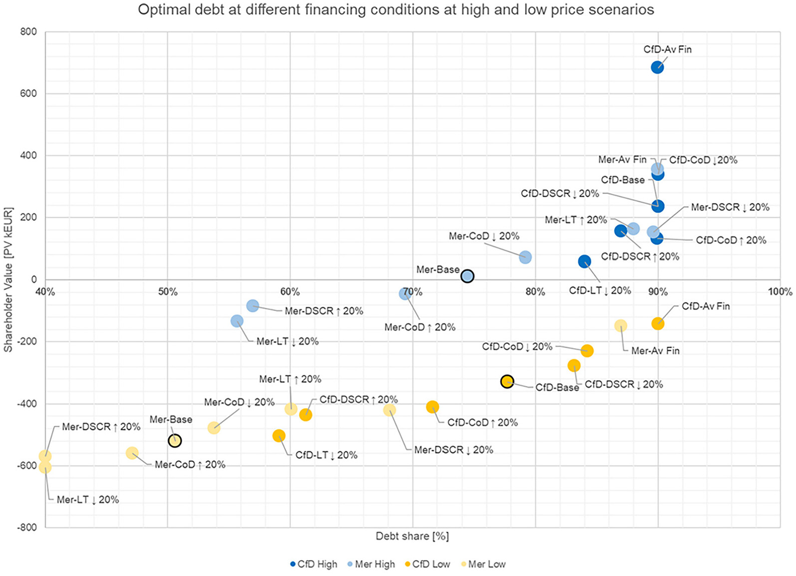 Our study is the first to quantify the impact of merchant risk and revenue stabilization via CfDs on financial distress and debt sizing, adding to the dynamic discussion on CfD designs (