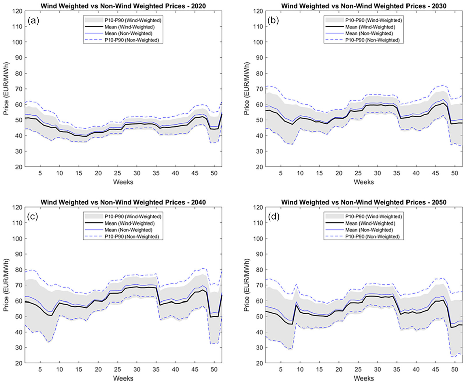 Ostrovnaya et al. (2020) estimate the impact of merchant risk on the WACC (weighted average costs of capital) for an onshore wind farm in the UK. Further,