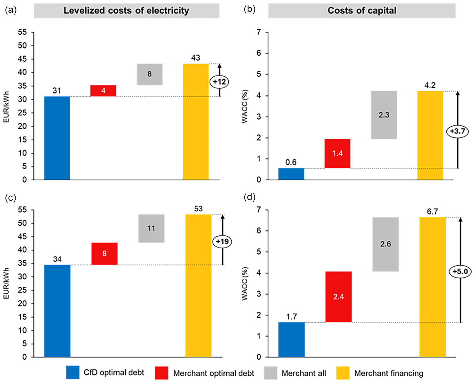Hundt, Jahnel and Horsch (2021) investigate the impact of different off-taker creditworthiness and merchant risk on onshore wind electricity production costs and project financing conditions, including debt size.