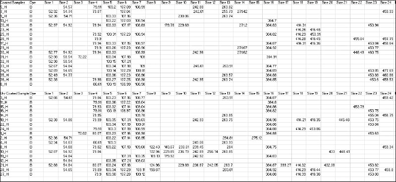 TRF107 and 103 were the most frequent species in the uncoated group while in the coated group TRF107 and 103 were counted 15 times (out of 18). This indicates TRF107 and TRF103 were reproducibly present across 2 groups signifying the reproducibility and sensitivity of the T-RFLP protocol followed in the present study. T-RFLP data analysis results also showed that few peaks were present only in uncoated samples. These peaks included TRF122, TRF124, TRF125, TRF157, TRF144, TRF229,TRF237, TRF256,TRF254, TRF457,TRF278,TRF399.TRF433,TRF445,TRF255,TRF261,TRF239,TRF432,TRF453. Also, a few other peaks were found only in AgNP coated group which included TRF461, TRF460, TRF457, TRF478, TRF246, TRF271, and TRF272. The result suggests that the protocol was sensitive enough to identify the peaks.