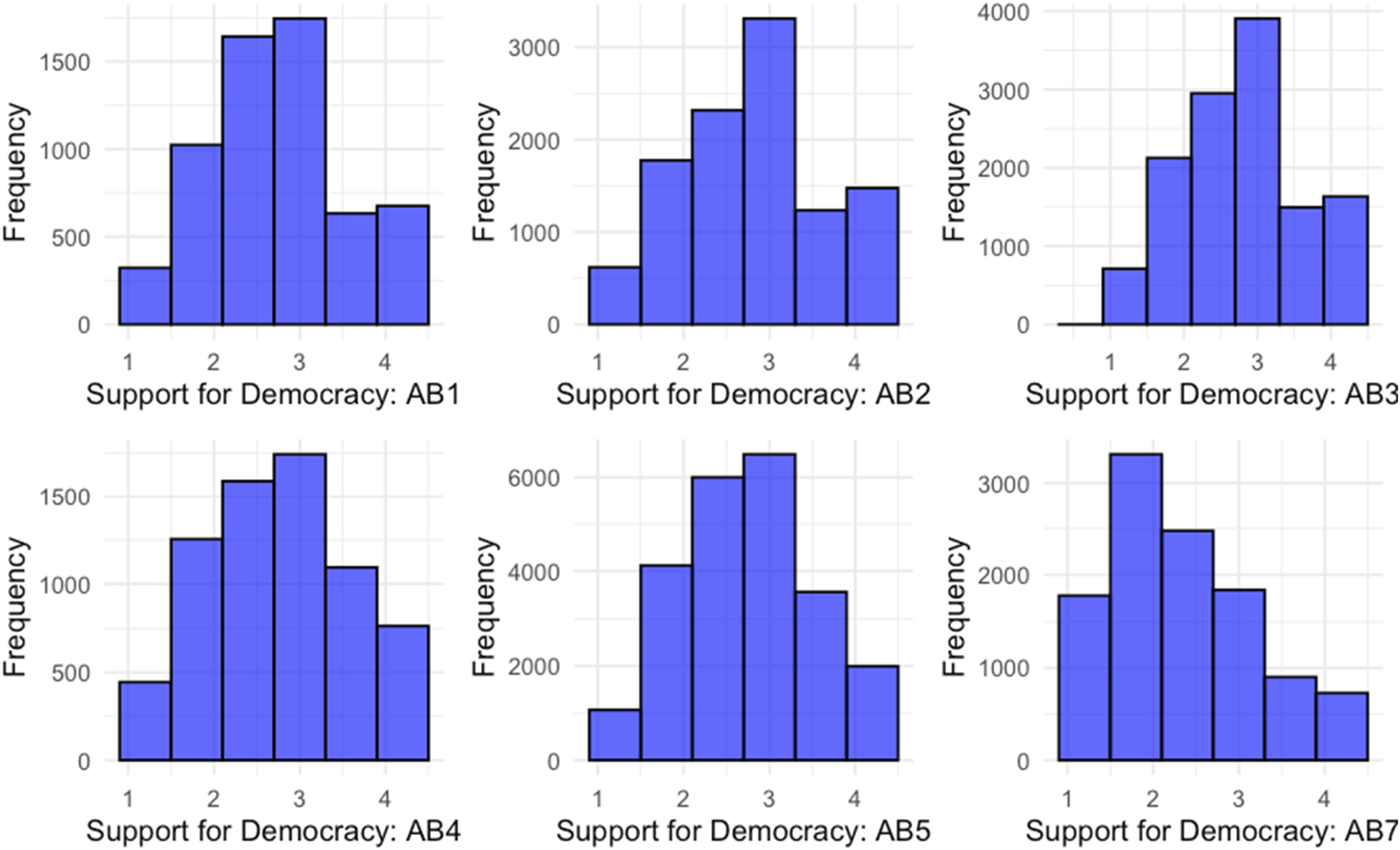 Overall, results suggest that group-level effects are minimal, which is why the focus remains on standard linear models presented in main analysis. This is largely because most of the countries included in the AB surveys exhibit similar characteristics regarding their levels of democracy. They are predominantly authoritarian. As a result, group-level effects—whether based on democracy levels or regime types—do not significantly contribute to explaining the relationship between social media engagement and support for democracy. Therefore, the individual-level linear models in the main analysis better capture the dynamics of the relationship between online political engagement and support for democracy.