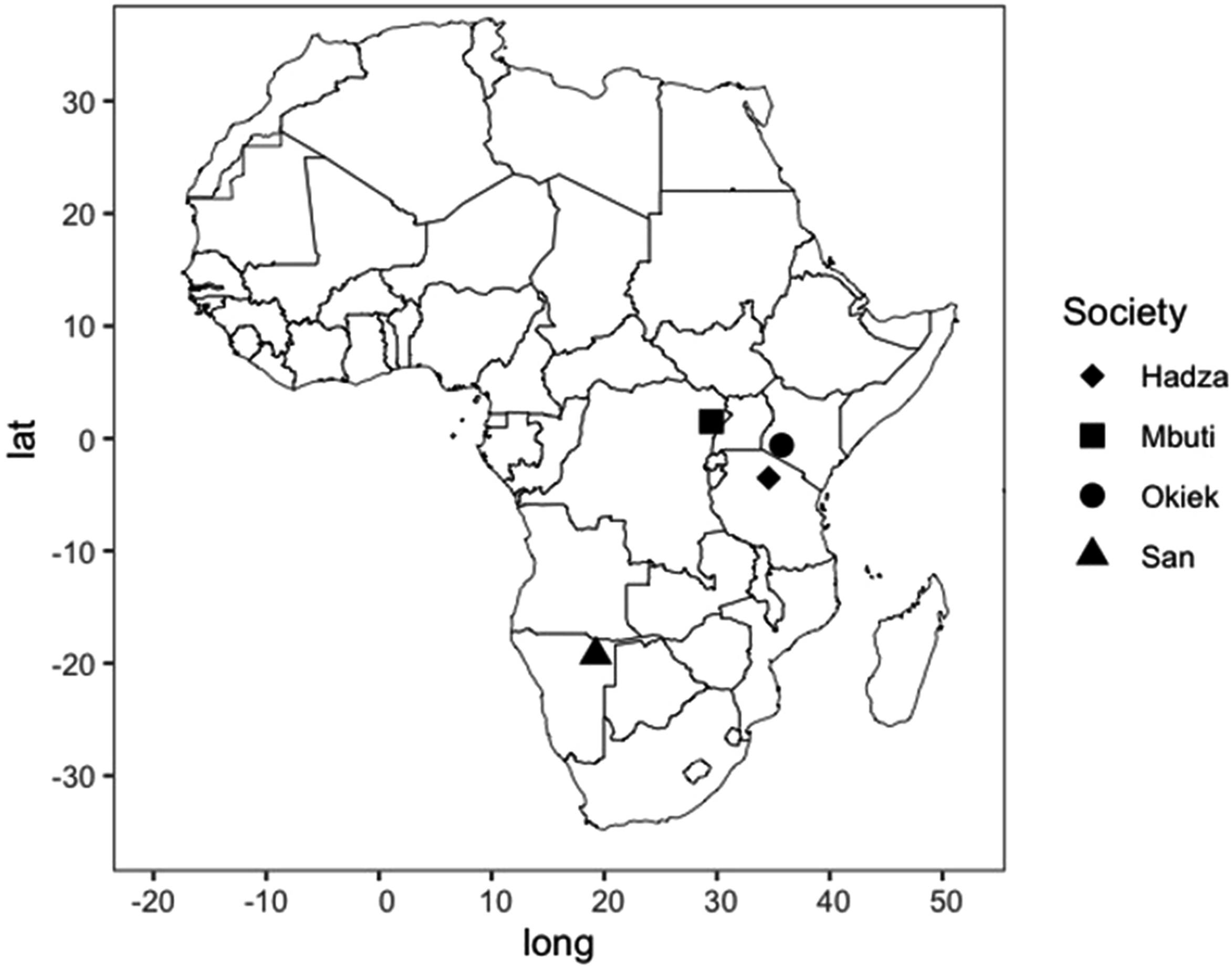 | Central Africa | Mbuti | 5 | 1951–1973 | 211 |