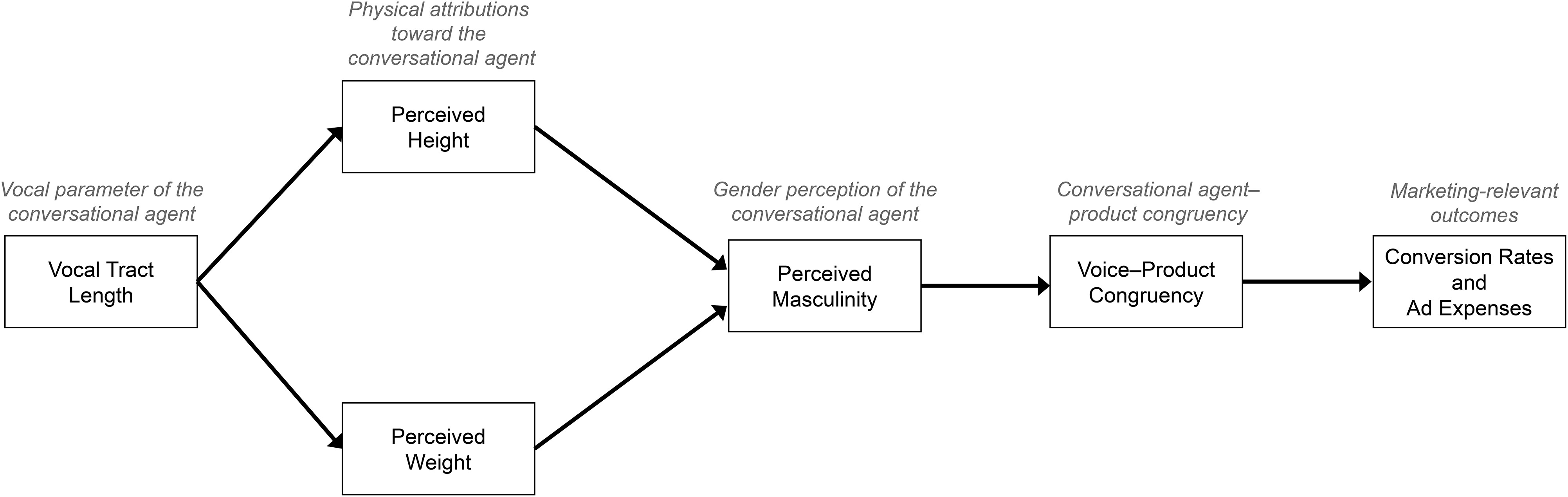In what follows, we provide an integrative review of prior work on the impact of voice interactions on consumers and how they can influence the user experience with conversational agents, the role of digital VTL in physicality perceptions, and the link between sound symbolism and congruency effects in marketing. We then provide evidence from four studies, including one large-scale field experiment, that test our theorizing. We conclude with a discussion on how speech synthesis and artificial voice generation provide novel directions for future research in voice marketing.