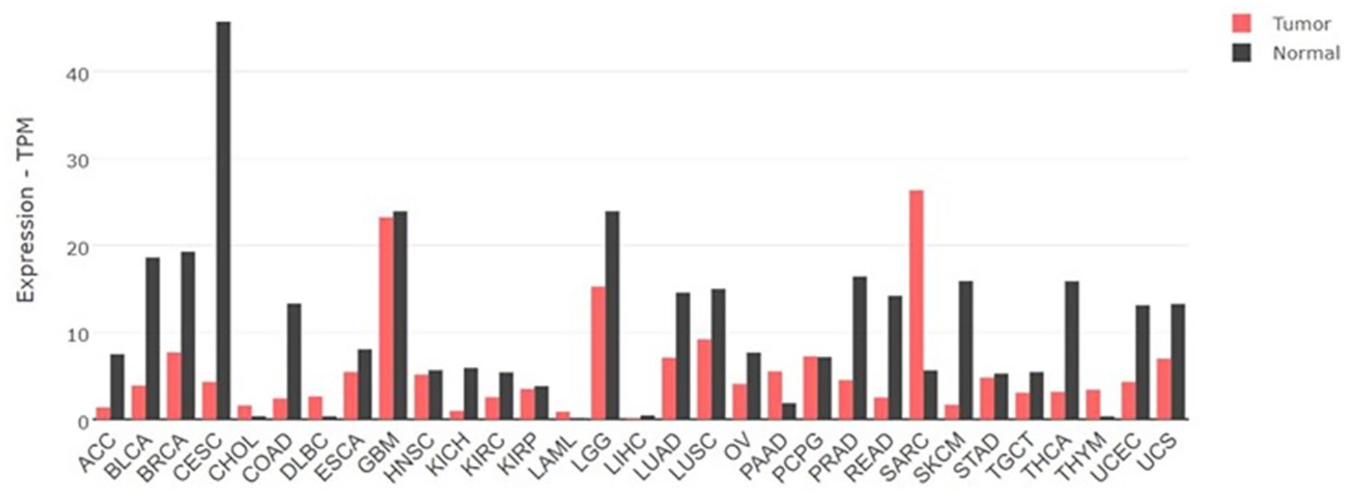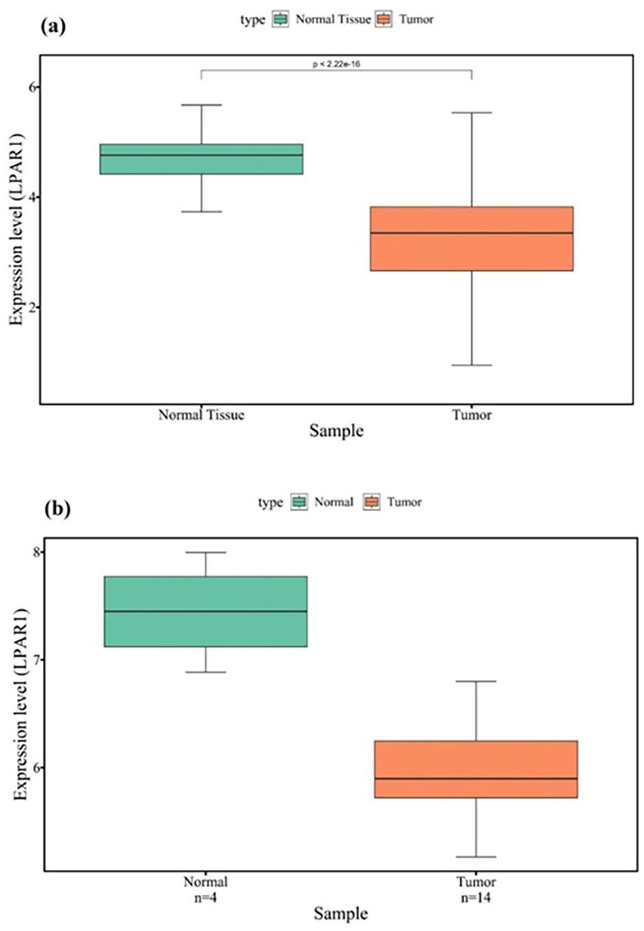To expand our knowledge of LPAR1 expression across various types of cancer, we utilized the Gepia2 database (http://gepia2.cancer-pku.cn/). Gepia2 is a valuable tool for large-scale RNA sequencing and expression analysis. This database integrates data from TCGA and the Genotype-Tissue Expression (GTEx) projects. By accessing the Gepia2 database, we explored and examined LPAR1 expression levels in various cancer types.