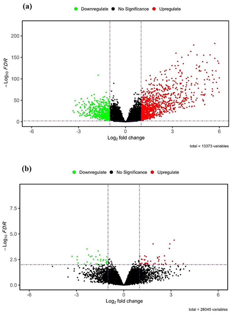 By employing the DESeq2 package in R, we conducted an analysis to identify a set of differentially expressed genes (DEGs) in thyroid cancer samples compared to normal control samples. Our analysis revealed a total of 1081 upregulated genes and 544 downregulated genes, indicating significant changes in gene expression between the 2 groups (Figure 1b).