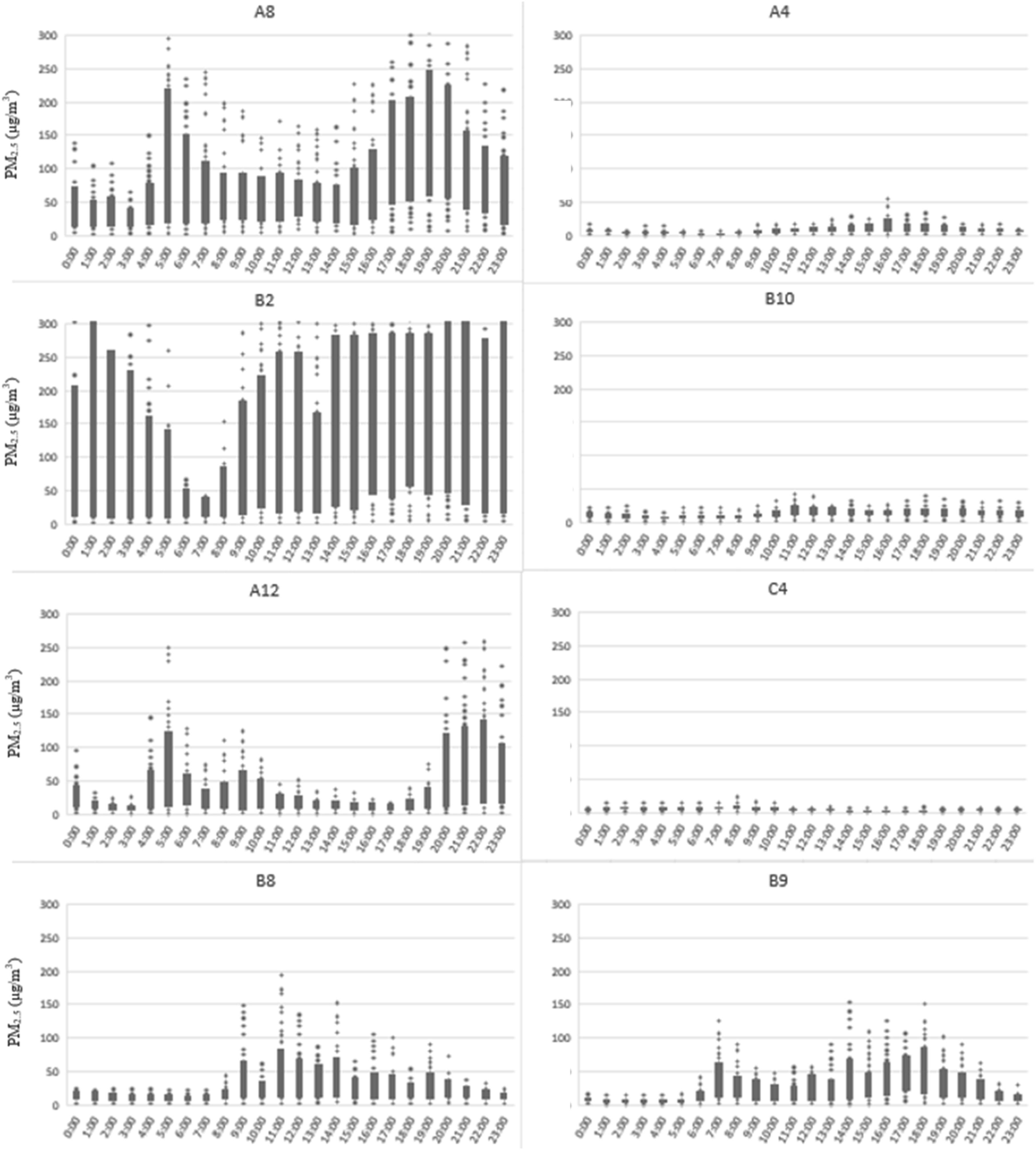 2.5 levels are examined in parallel, apartments in the 1960s’ high-rise building of site B performed the worst, followed by apartments in the 1930s low-rise buildings of site A. With regard to the first, this is primarily due to high indoor PM
