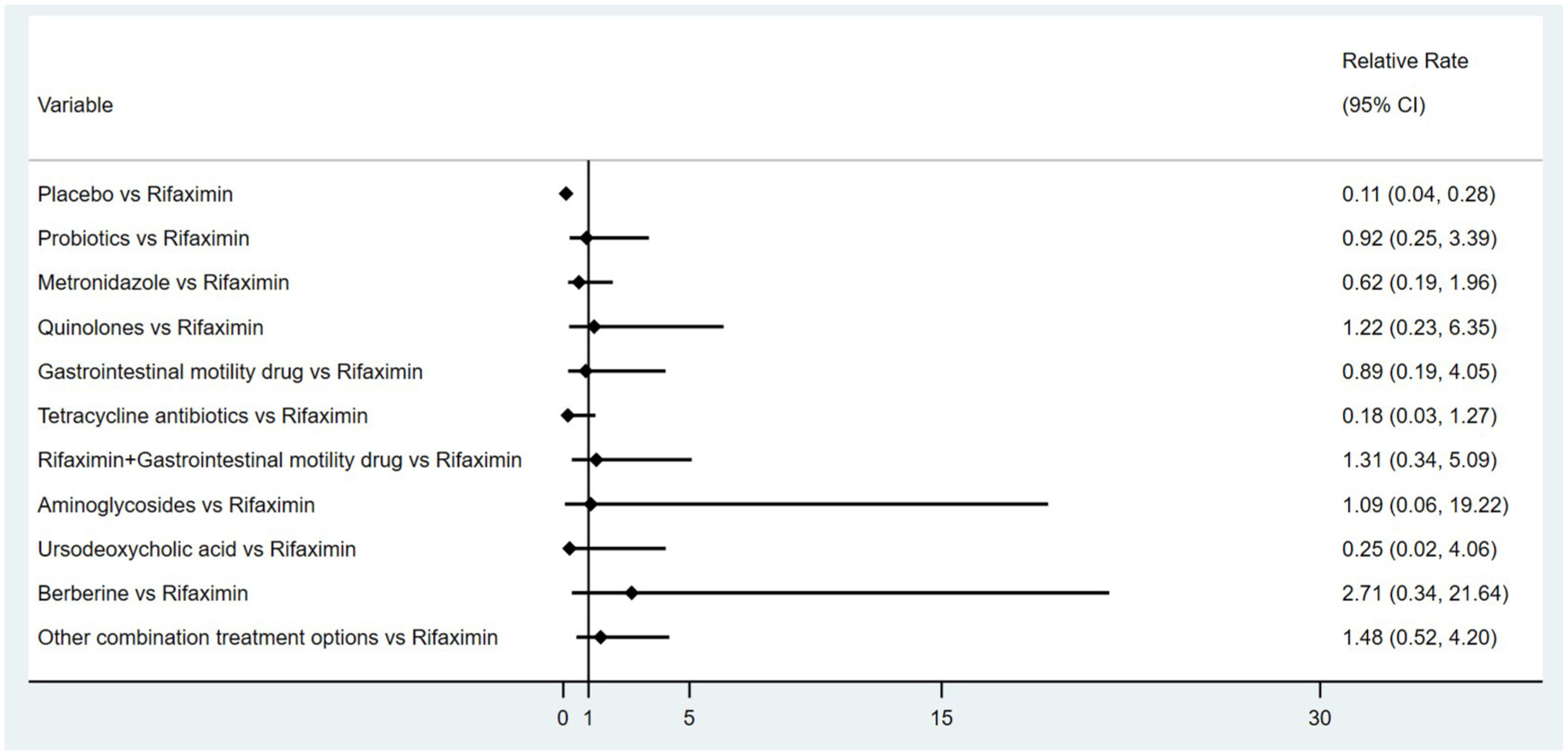Comparative efficacy of diverse therapeutic regimens for small intestinal bacterial overgrowth: a systematic network meta-analysis