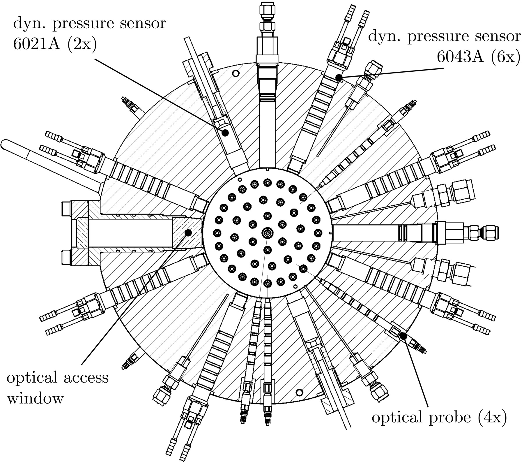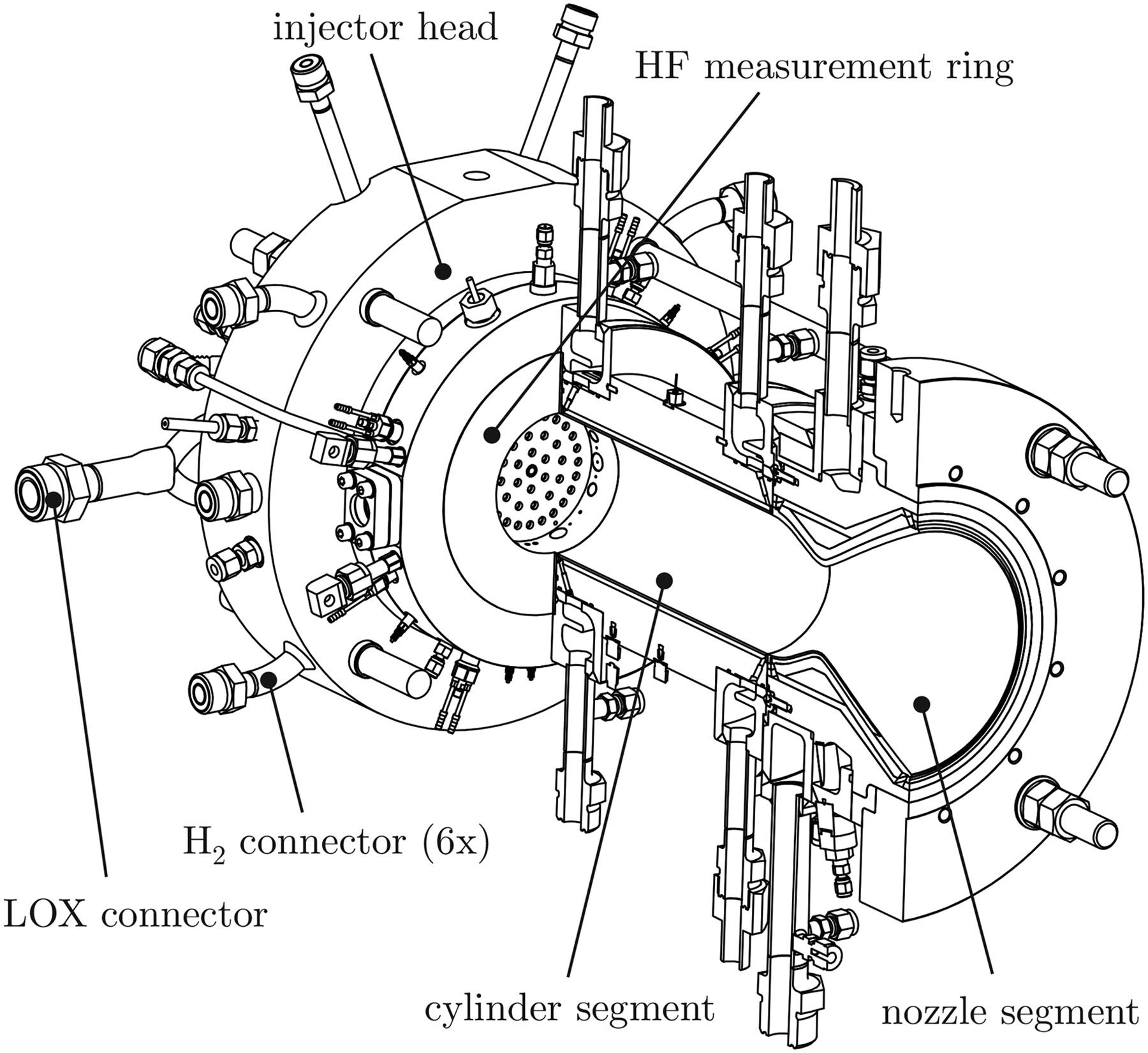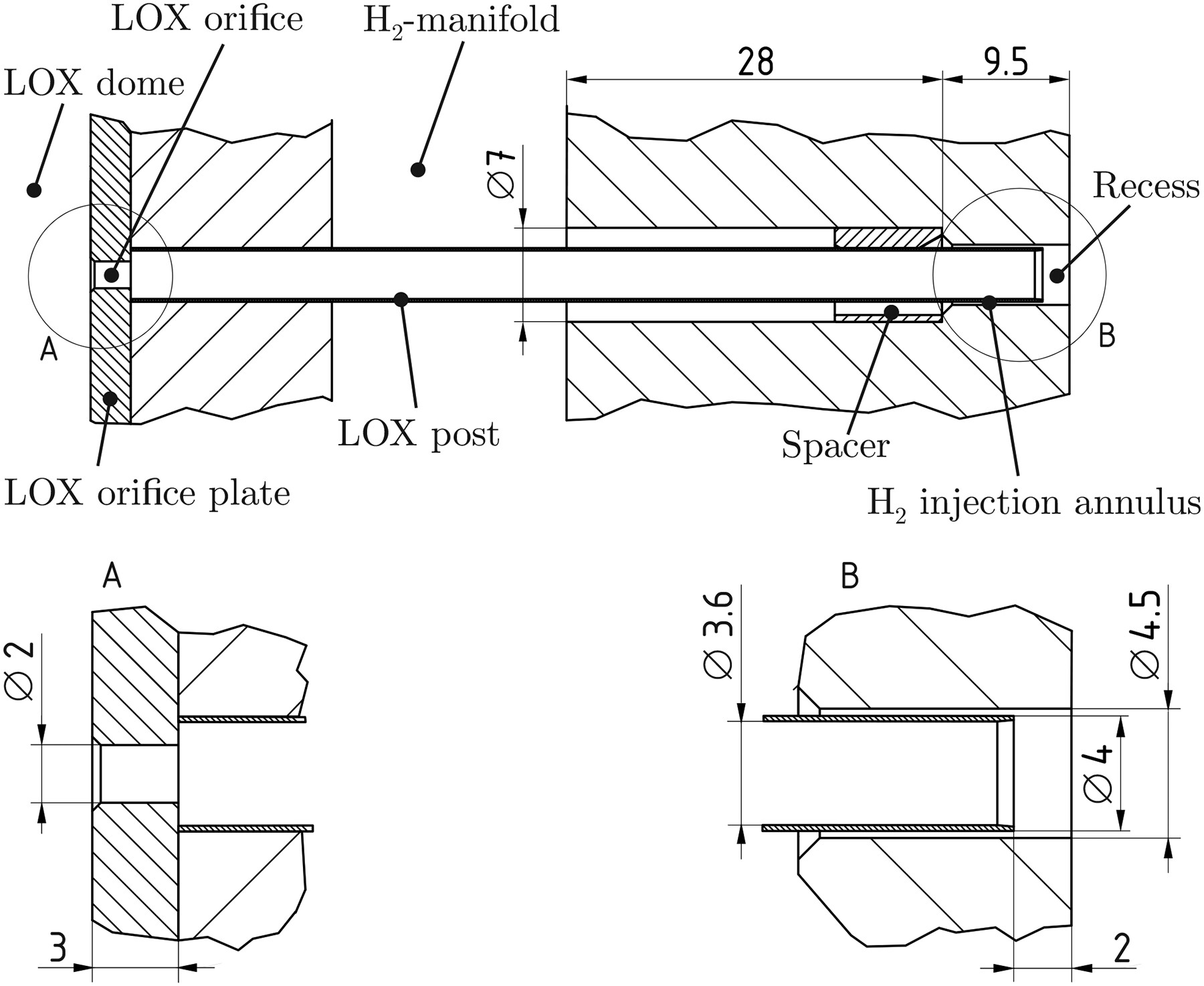 12 also pointed out that combustion in the recess is a possible source of excitation of the LOX post modes in BKD. In BKD tests with the propellant combination LOX/LNG, injector-coupled combustion instabilities occurred in a configuration with recess, whereas no instabilities occurred without recess.