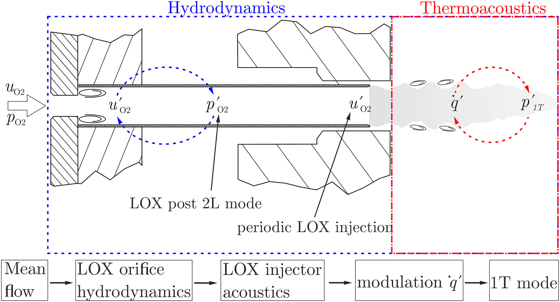 13 These effects can potentially interact and amplify acoustic oscillations in the injectors or lead to modulated injection rates and hence play a role within high-frequency combustion instabilities.