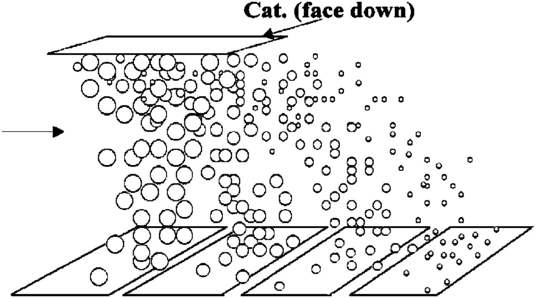 When the catalyst-substrate interaction is weak, the precursor gas (hydrocarbon) decomposes on the upper surface of the catalyst metal, carbon diffuses downward through the catalyst metal, and CNTs precipitate through the bottom of the metal, expelling all metal particles. Substrate.