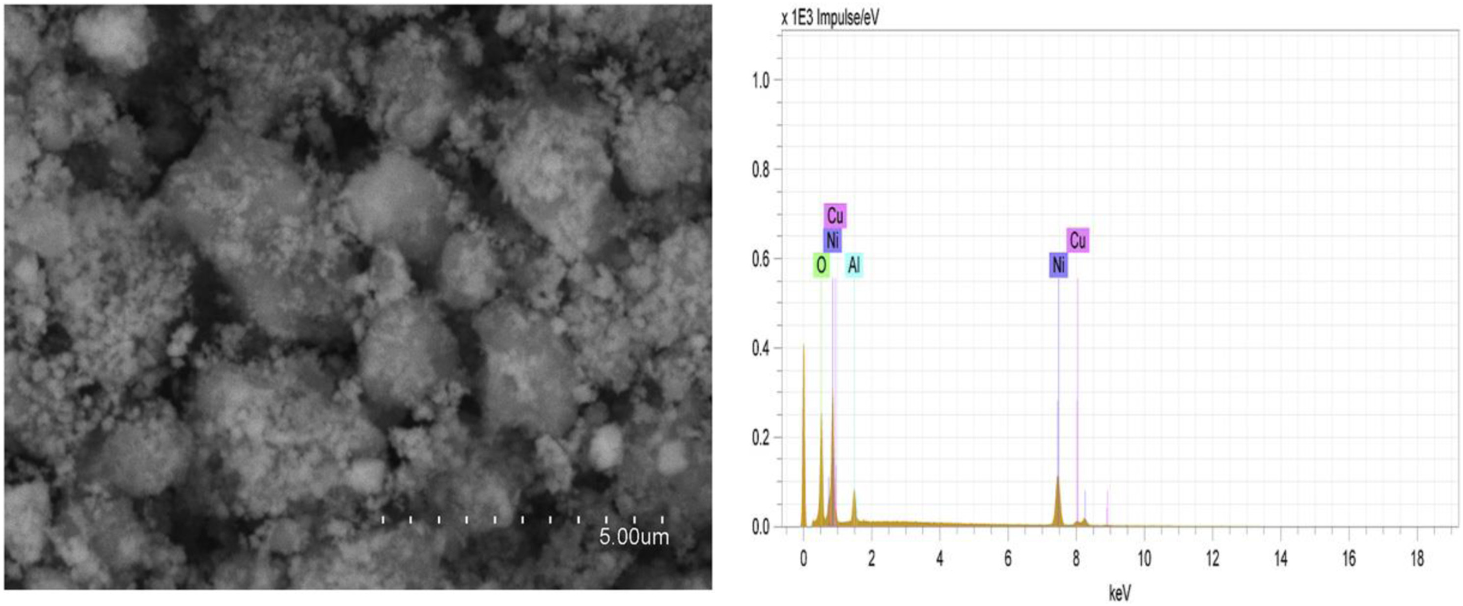 Figure 10. SEM image and EDX analysis of the NiCu/Al2O3 catalyst (Pinilla et al., (2000)).29.