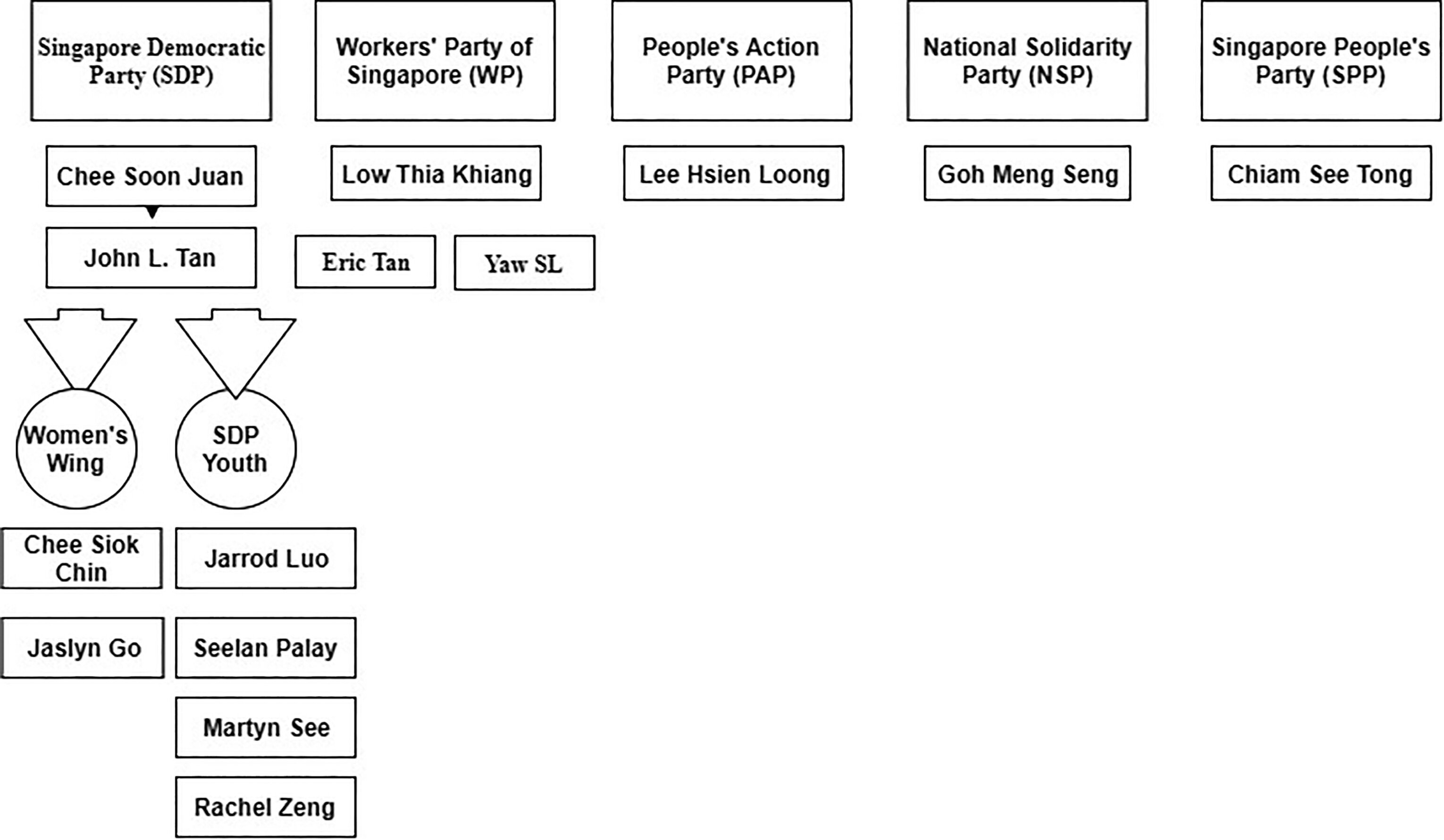 Ramdas, 2015: 108), describes it as ‘stagnation, fall and rise’ for the opposition. Overall, and most obviously, the opposition, during this time interval, had two main parties, with competing strategies, the Singapore Democratic Party (SDP) and the Workers’ Party of Singapore (WP). Both these parties competed for hegemony amongst the non-PAP demographic and the less-committed swinging voters. At the 1991 General Election (hereafter GE), the SDP became the most successful opposition party, winning two new seats to add to its one existing seat, Potong Pasir SMC, which was held by Mr Chiam See Tong. The SDP then had no firm ideology but was essentially a working-class Chinese party. After the takeover of the party leadership by the former National University of Singapore (NUS) lecturer, Dr Chee Soon Juan, in 1993, the SDP adopted a Western- or Hong Kong-style liberal-democratic approach with a focus on human rights. This tended to attract a new multicultural and younger supporter base while alienating some of its existing supporters. The SDP in 1997 lost all of its seats. Just before the 1997GE, Chiam joined the extant Singapore People’s Party (SPP) as its new chief.