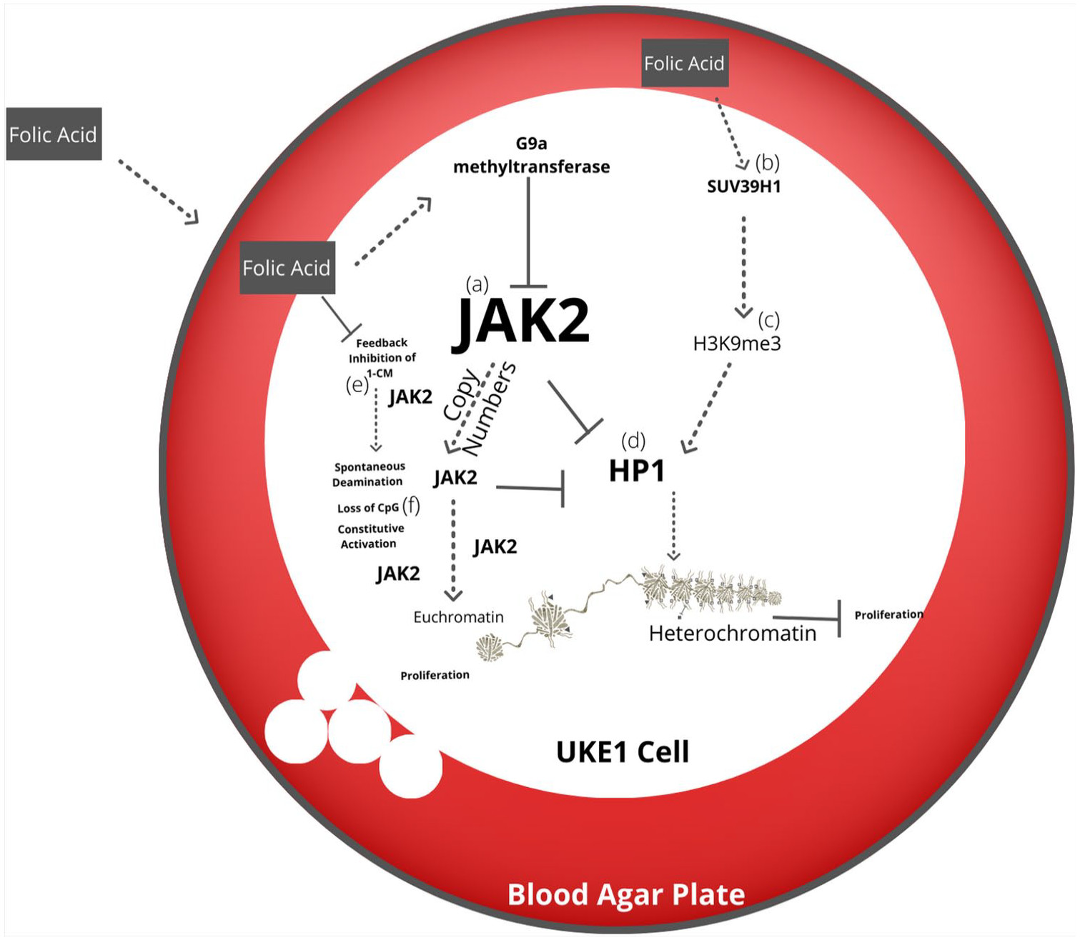 76 Negative regulation of JAK2 is demonstrated by the upregulation of G9a methyltransferase at H3K9me2, and comparably the inhibition of G9a H3K9 methyltransferase increases JAK2 expression and ultimately H3Y41 phosphorylation, demonstrating direct epigenetic modulation by methylation.