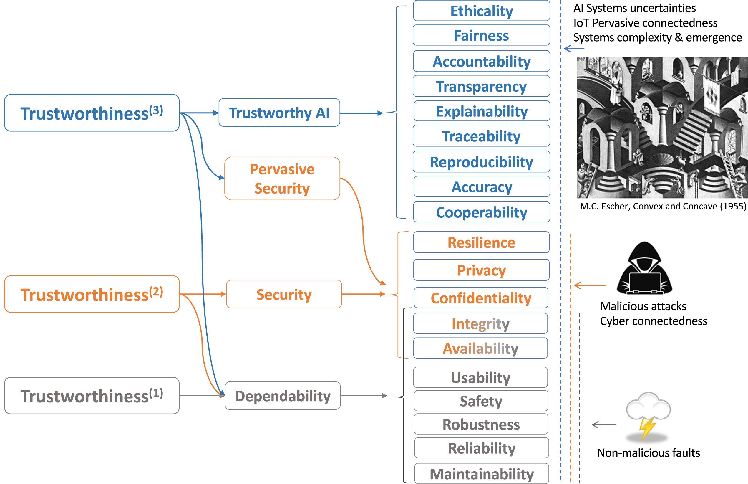 Fig. 5, ethicality is about the extent to which an AI system complies with this principle.
