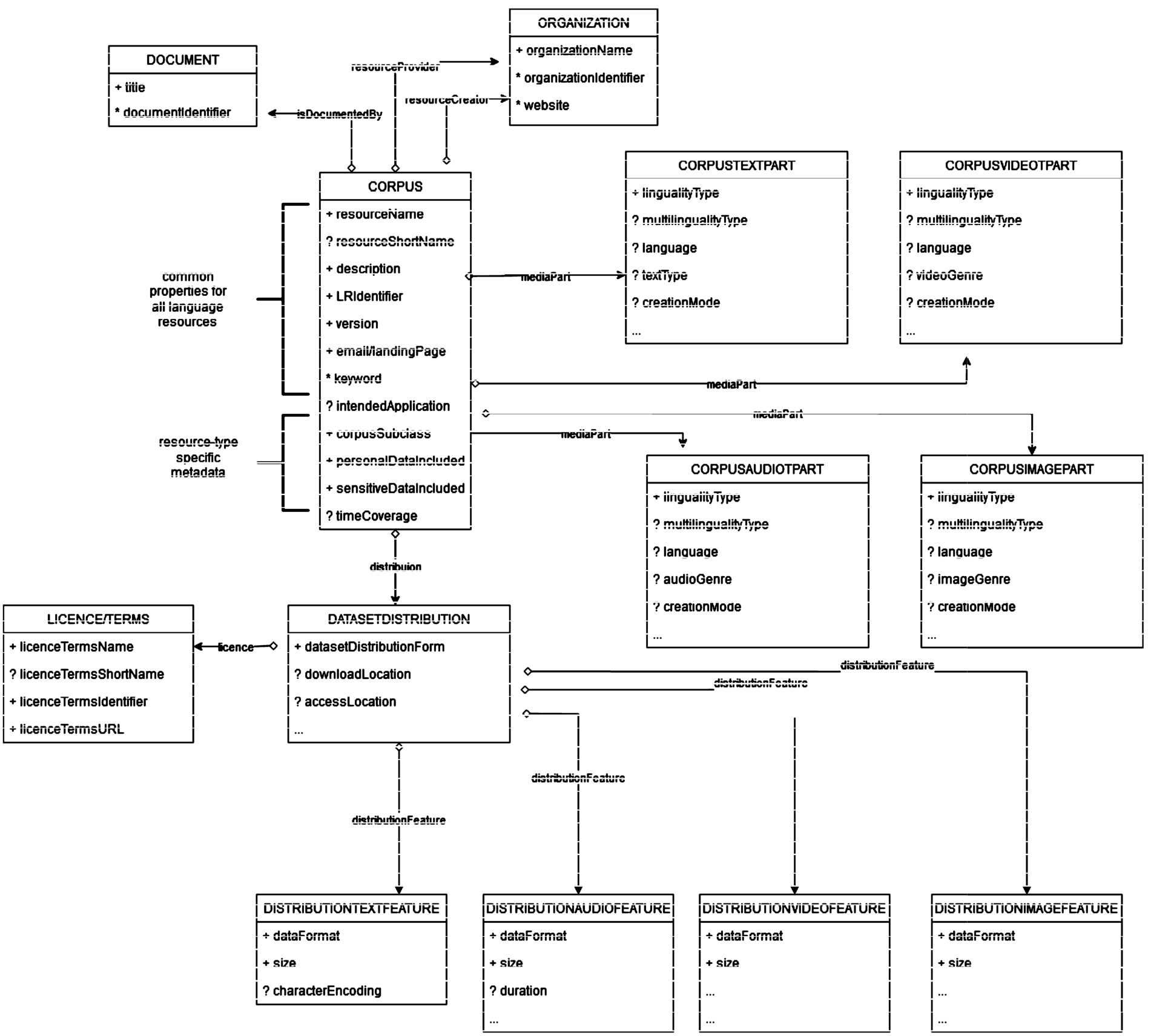 | META-SHARE | CC, DC, DCAT, FOAF, SKOS, XSD | Linguistic Resource Metadata | CC-BY 4.0 | Version 2.0 (pre-release) | Section 4.4 and Section 5.3.2 |