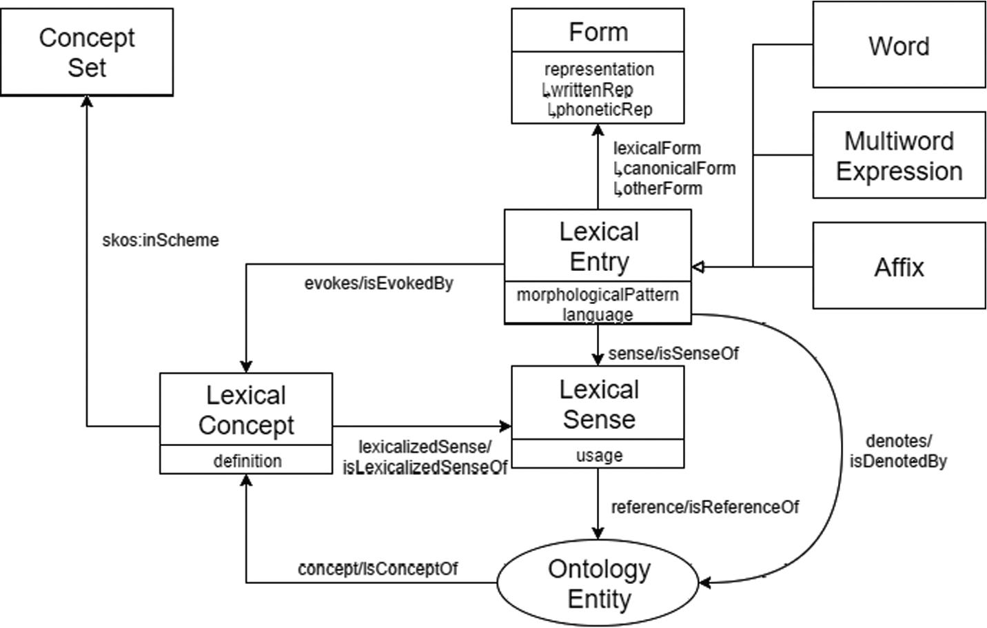 | OntoLex-Lemon: FrAC | Lexica and Dictionaries | Under Development | Section 5.1.3 |