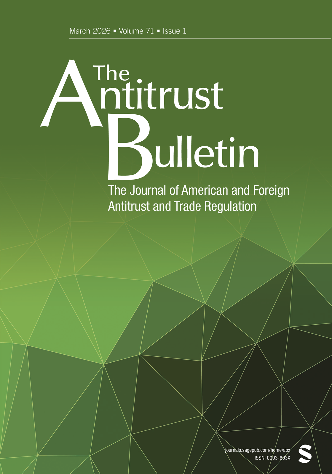 The Antitrust Bulletin publishes quality and learned articles by today's leading authorities on current topics exploring and related to domestic and global antitrust law, competition policy, and industrial economics for a readership of professional practitioners, academics, policy makers, and students. View full journal description