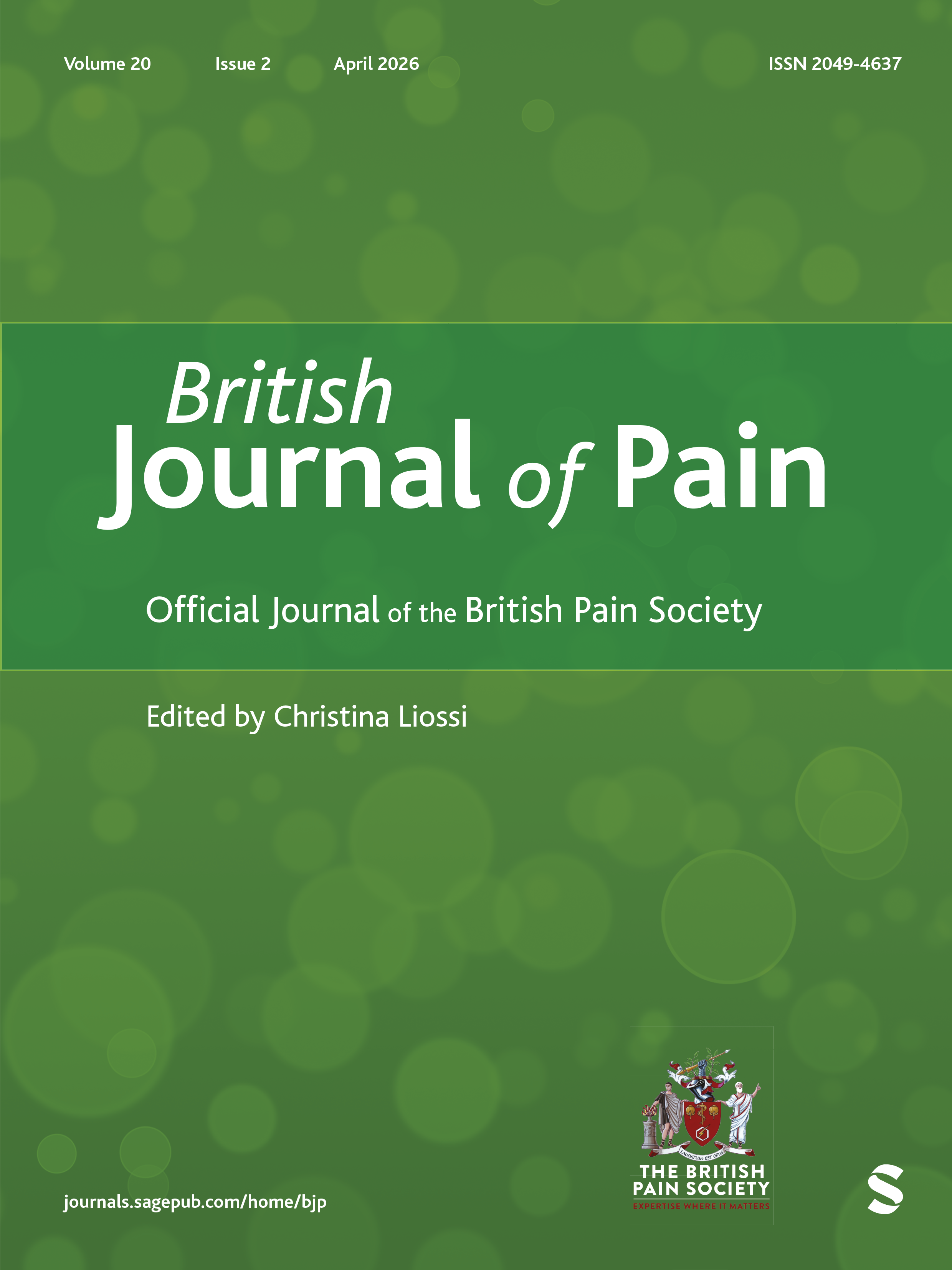 British Journal of Pain is a peer-reviewed quarterly British journal with an international multidisciplinary Editorial Board. The journal publishes original research and reviews on all major aspects of pain and pain management. Reviews reflect the body of evidence of the topic and are suitable for a multidisciplinary readership. Where empirical evidence is lacking, the reviews reflect the generally held opinions of experts in the field. View full journal description