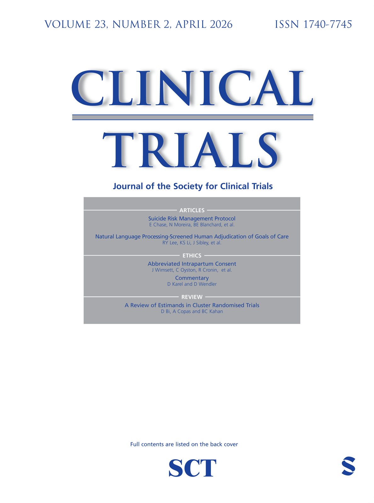 Clinical Trials is dedicated to advancing knowledge on the design and conduct of clinical trials related research methodologies. Covering the design, conduct, analysis, synthesis and evaluation of key methodologies, the journal remains on the cusp of the latest topics, including ethics, regulation and policy impact. View full journal description