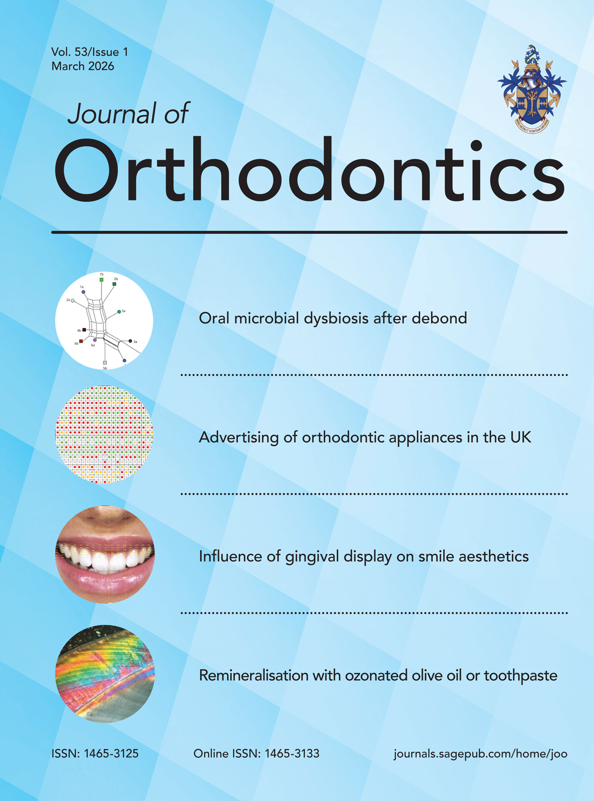 Journal of Orthodontics is the official journal of the British Orthodontic Society. It is an international, peer reviewed, journal with global circulation. Aim: to publish high quality, evidence-based, clinically orientated or clinically relevant original research that will underpin evidence based orthodontic care. Welcomes reports on prospective research into different treatment methods and techniques, systematic reviews, meta-analyses and studies stimulating interest in new developments. View full journal description