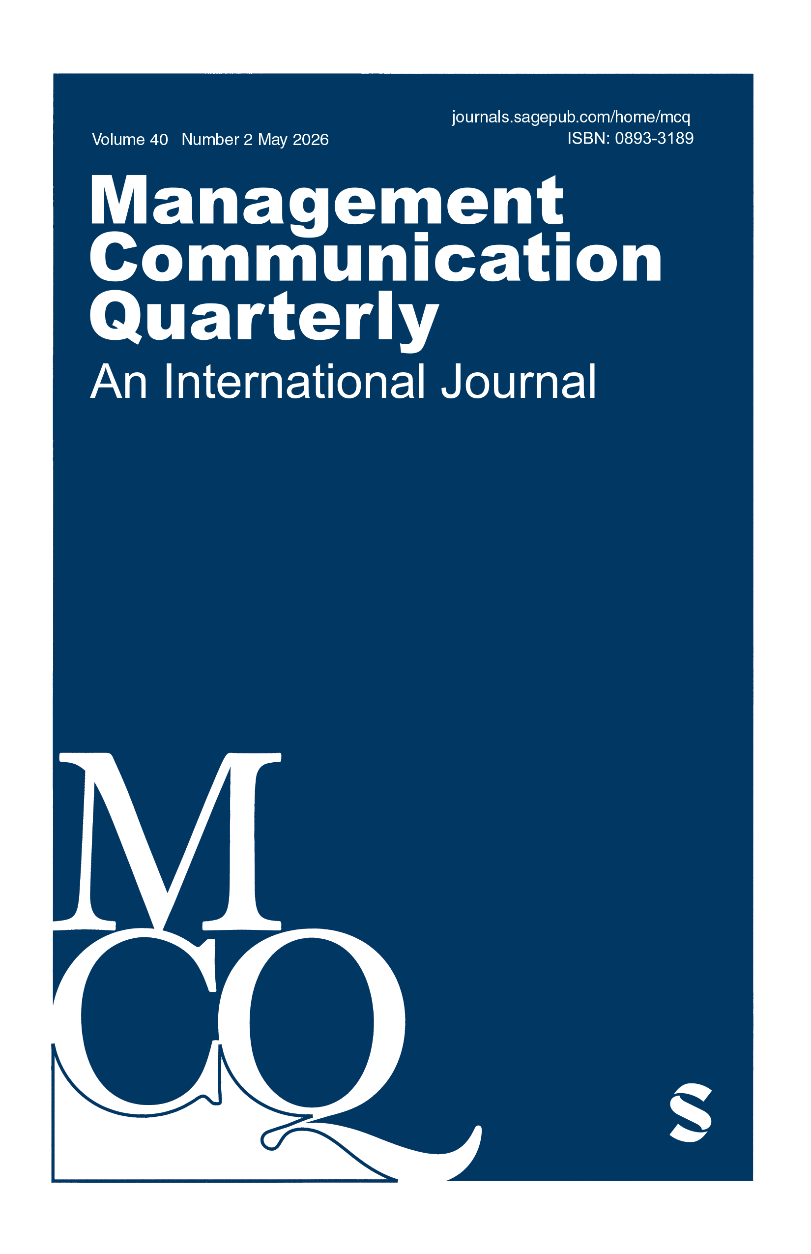 Management Communication Quarterly (MCQ), peer-reviewed and published quarterly, is an essential resource for scholars of organizational and managerial practice and offers valuable and timely insights for professionals, consultants, and trainers. MCQ publishes conceptually rigorous, empirically-driven, and practice-relevant research from across the organizational and management communication fields. View full journal description