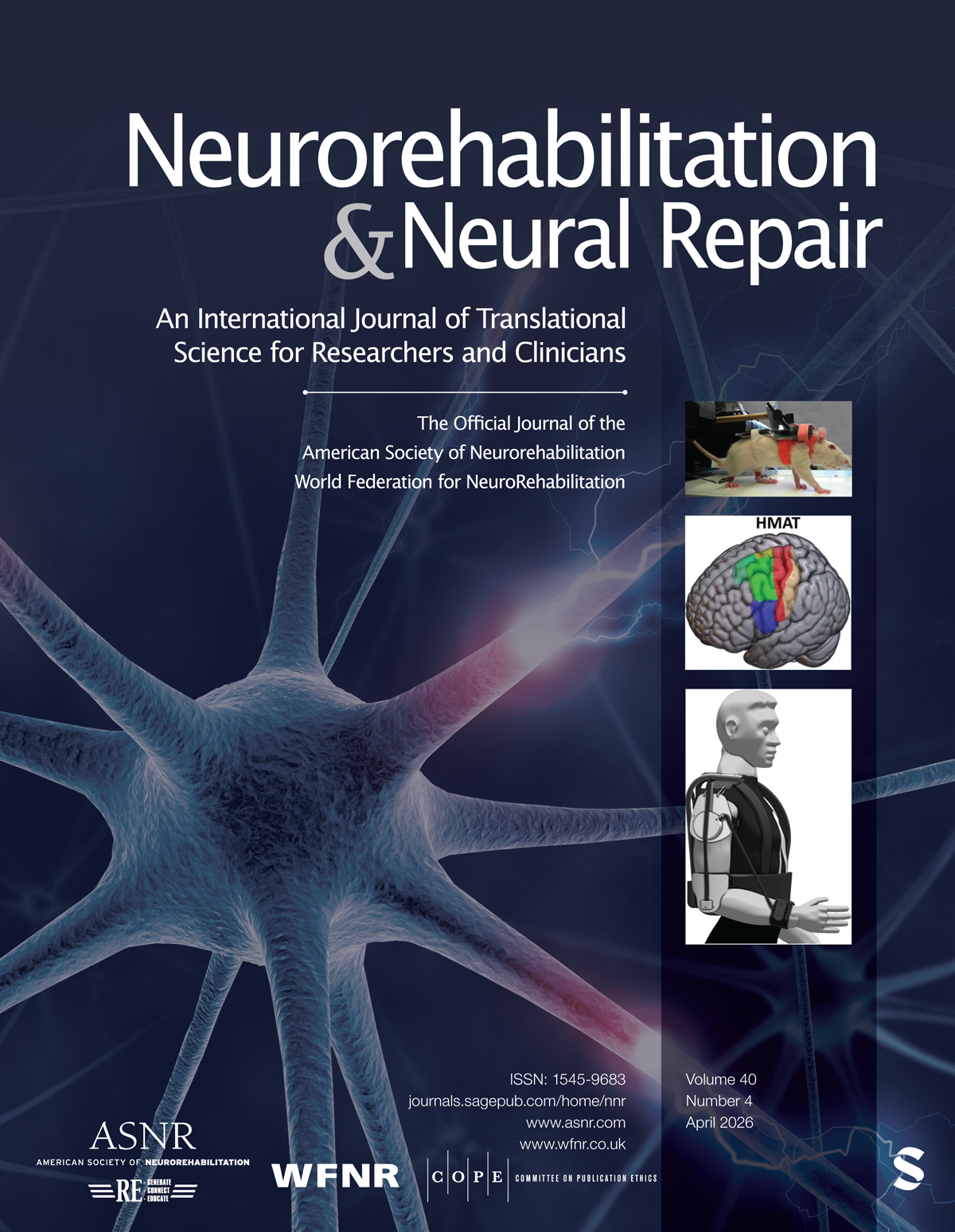 Neurorehabilitation & Neural Repair (NNR) offers innovative and reliable reports relevant to functional recovery from neural injury and long term neurologic care. The journal's unique focus is evidence-based basic and clinical practice and research. NNR deals with the management and fundamental mechanisms of functional recovery from conditions such as stroke, multiple sclerosis, Alzheimer's disease, brain and spinal cord injuries, and peripheral nerve injuries. View full journal description